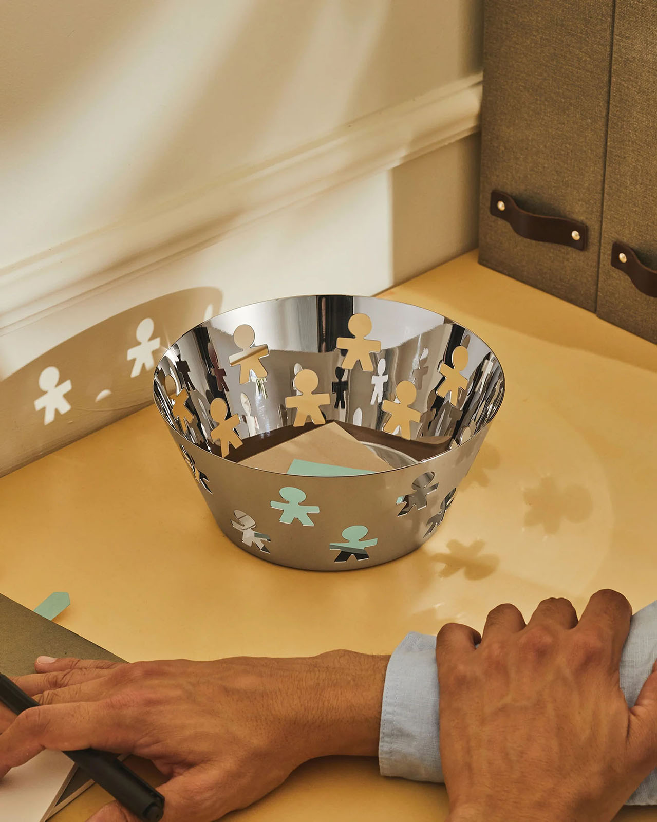 ステファノ・ジョバンノーニとグイド・ヴェントゥリーニのデザイン・デュオによる切り絵人形のモチーフのバスケット。