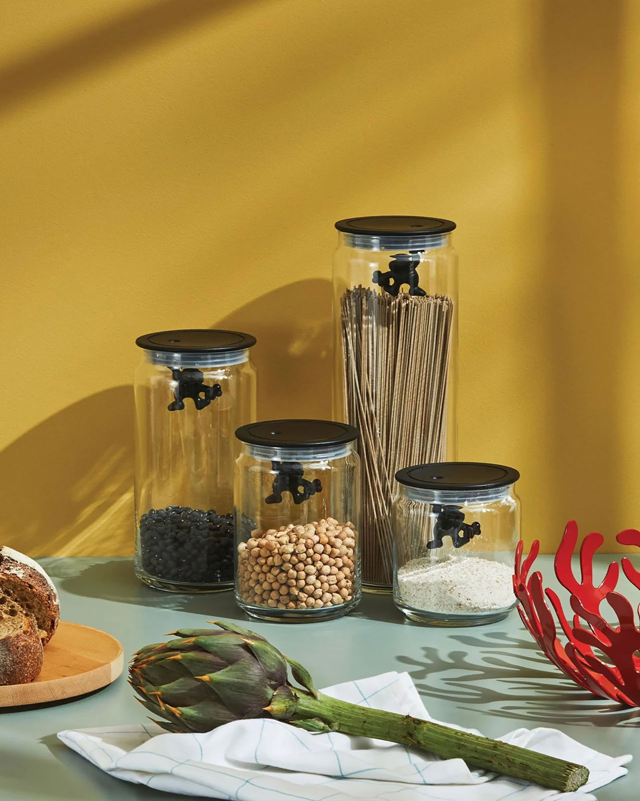 ALESSIの「Gianni a little man holding on tight(ジャンニ)」は、マティア・ディ・ローザによる、遊び心あふれるキッチンキャニスターです。