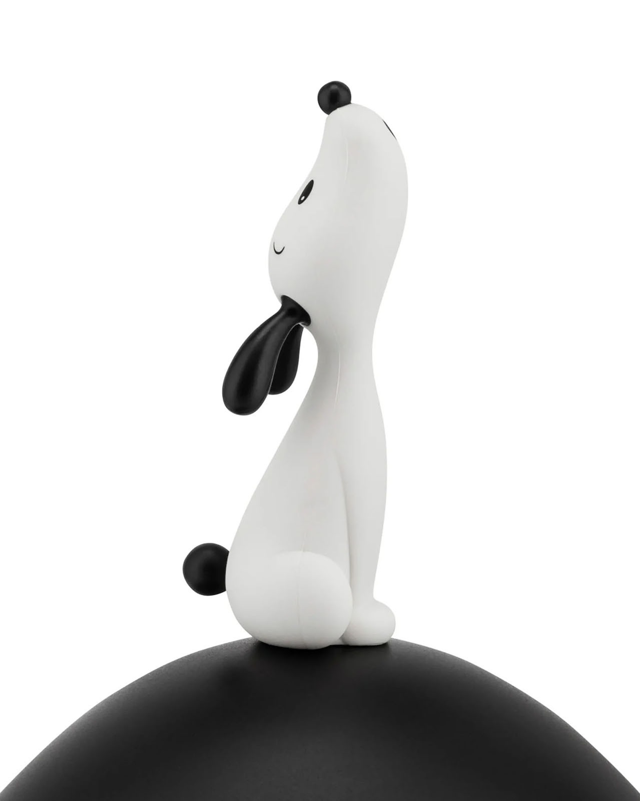 最大の特徴は、ボウルの上にちょこんと座っている愛らしい犬のキャラクターが一体となったフタです。