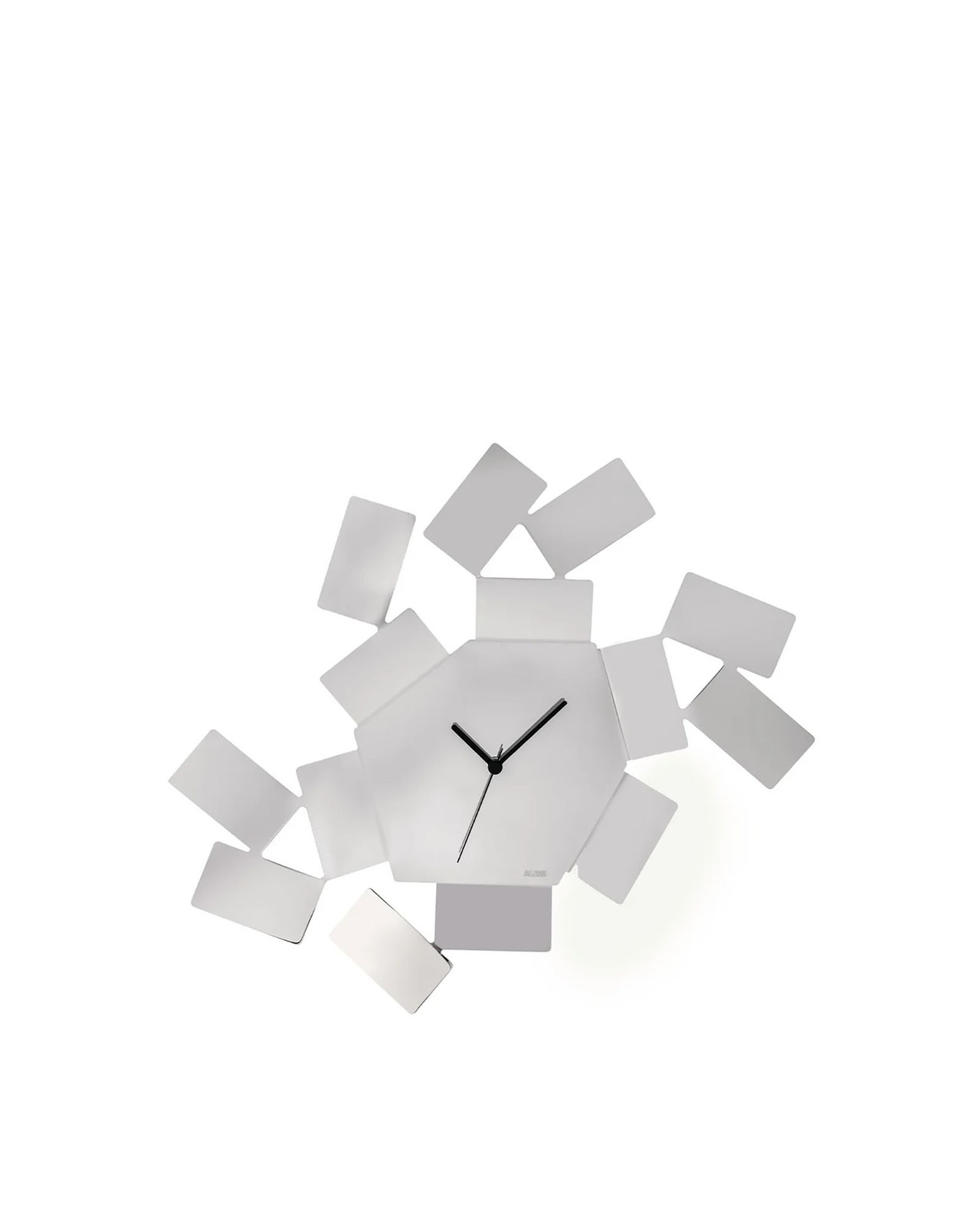 アレッシが得意とする金属加工技術を駆使し、ステンレスのシートから創り出された不規則な六角形のフェイスが特徴です。立体的な構造と空いたスペースから生まれる光と影のダイナミックなコントラストは、単なる時計を超えたアート作品のような存在感を放ちます。 リビングやオフィス、ショップなど、モダンで表現豊かなアクセントを求める空間に、視覚的なインパクトをもたらします。