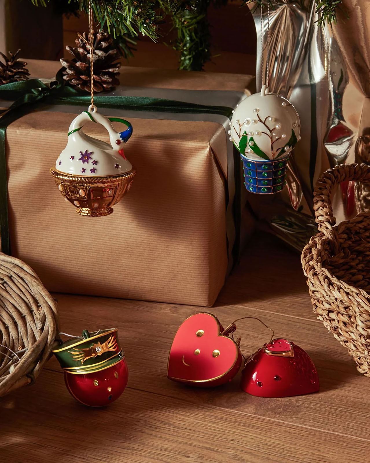 「Fleurs de Jori」のオーナメントは磁器製で、手描きで装飾され、エナメルと光沢のある立体的な装飾が施されています。ゴールドのエナメルには少量の純金が加えられており、豊かな輝きを生み出します。