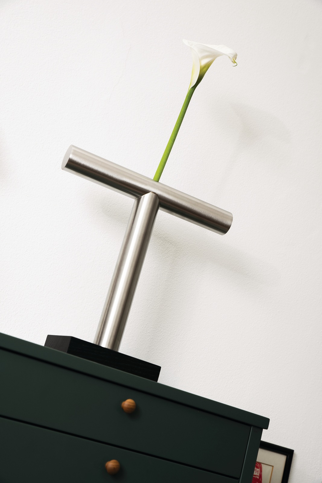 そこに冷たくも美しいステンレスが寄り添う姿は、花を活けていない時ですら、