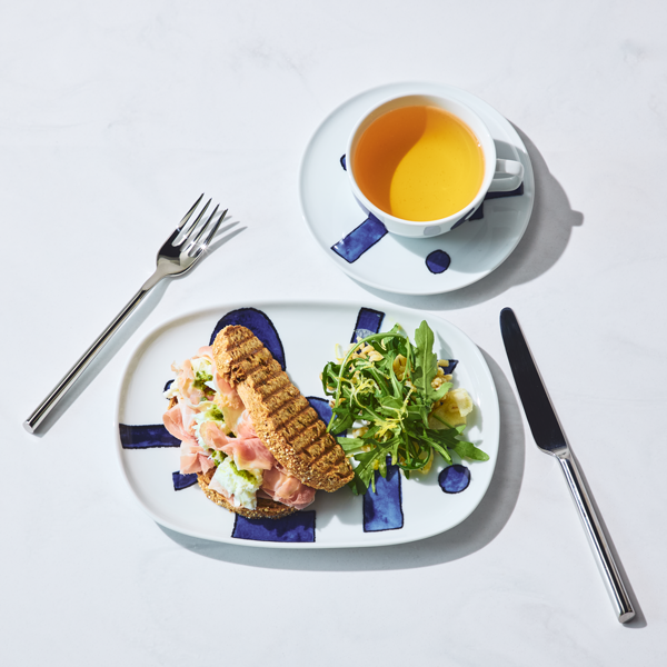 併設のカフェでは、本場イタリアの味わいを楽しめるラインナップをご用意。 香り高いハーブティーやリモナータ、パンチェッタを贅沢に使ったパニーニ、 そしてティラミスやアマレッティなどのドルチェがALESSIのプロダクトとともにテーブルを彩ります。